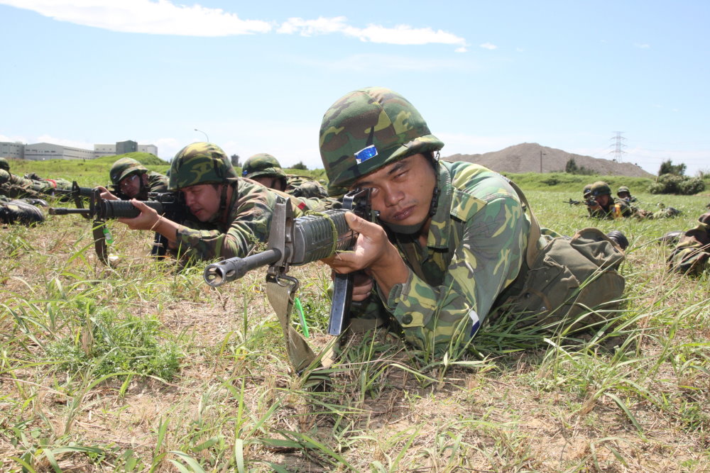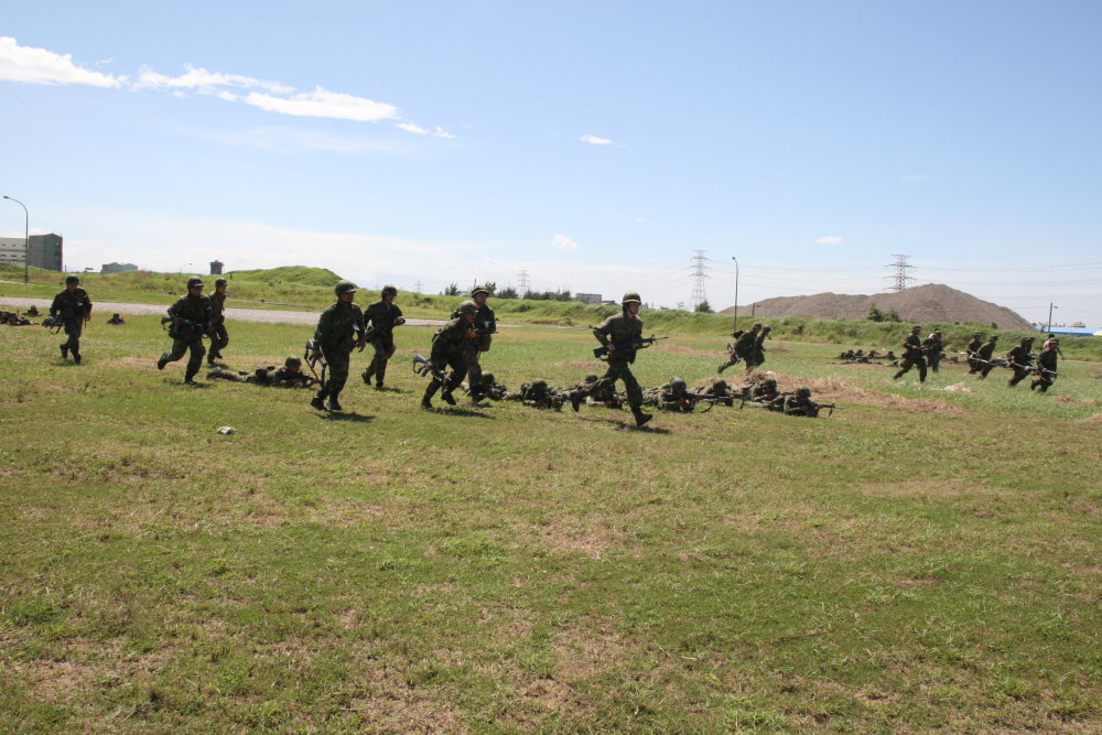 後備903旅應召員在短期專長複訓後,以成熟的單兵動作進行相關實兵操練