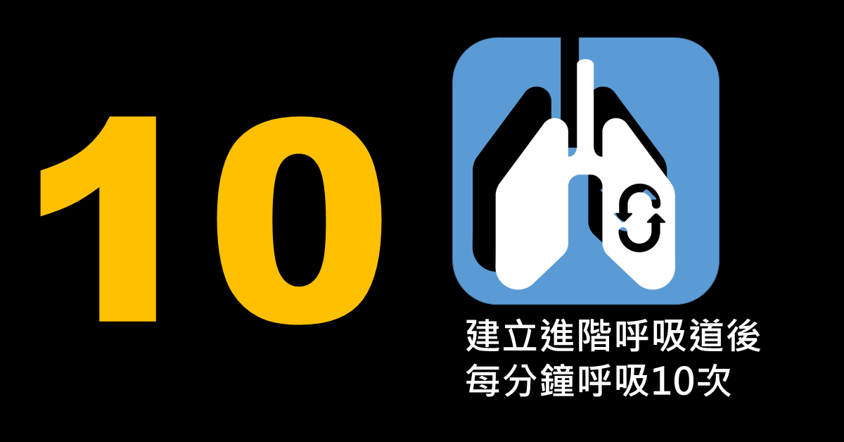 三、建立高級呼吸道後,每分鐘吹氣10次,即每6秒吹氣一次。