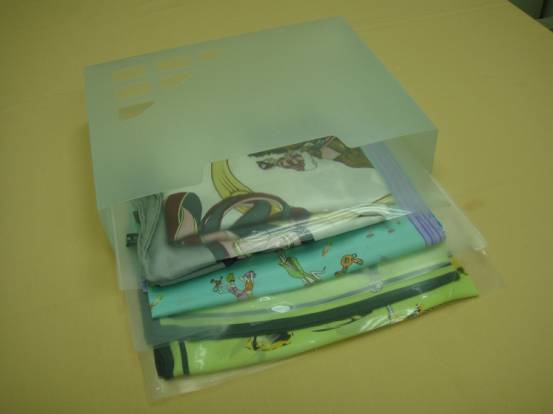 (3)在盒子內裝入乾燥劑,但不要碰到絲巾,蓋上蓋子即完成。